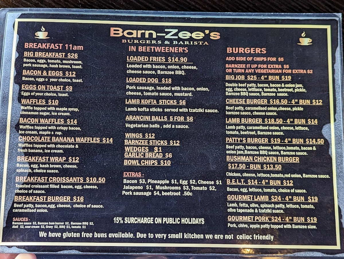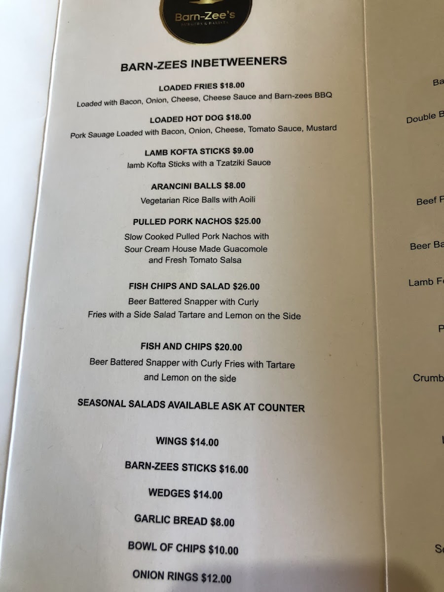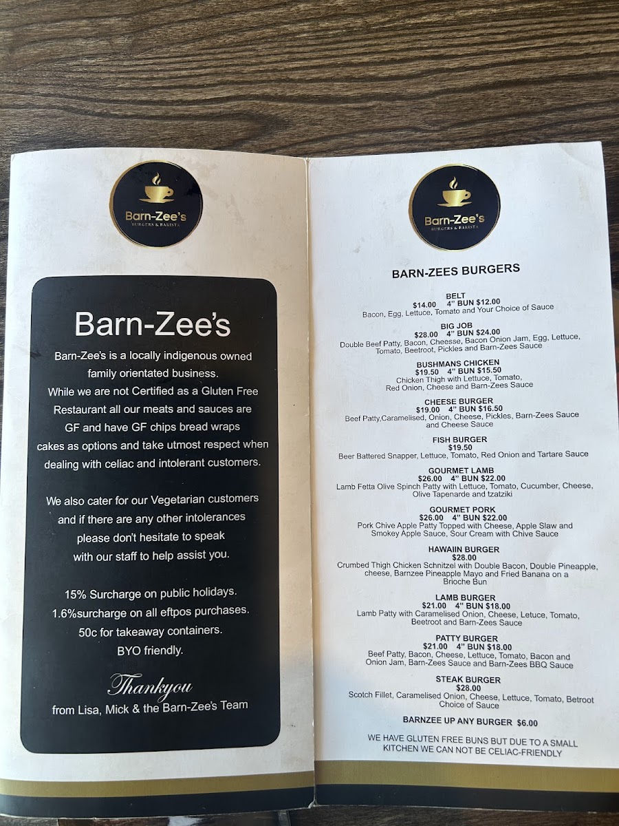 Barn-Zee's Burgers & Barista Menu