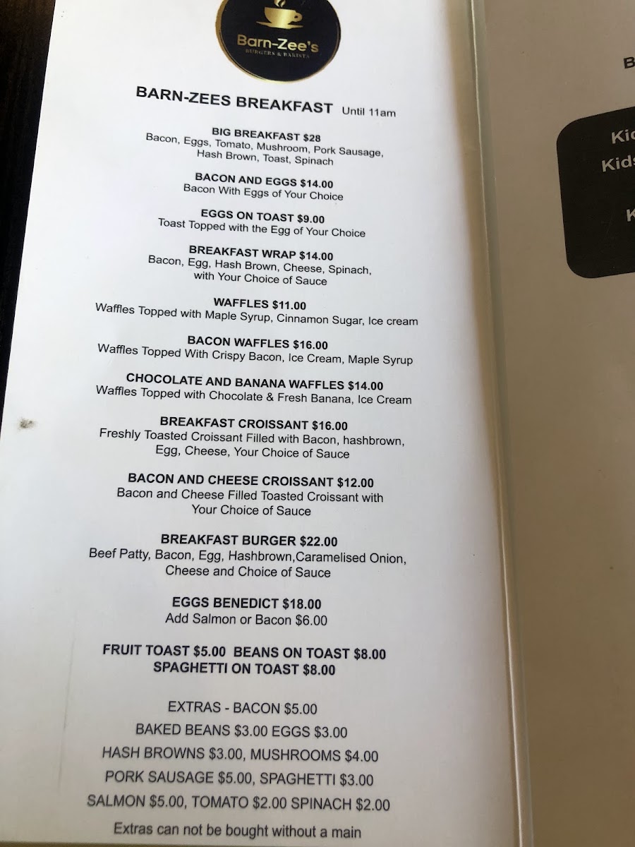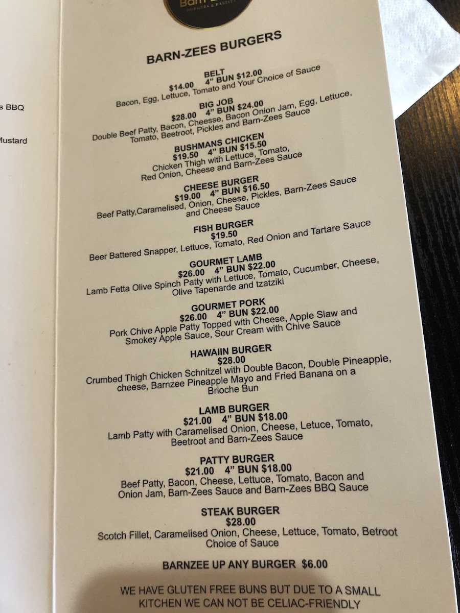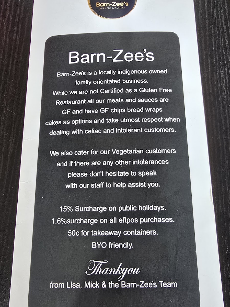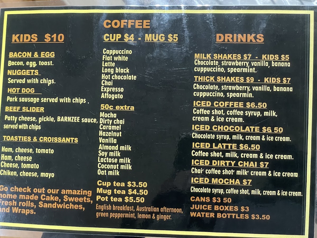 Barn-Zee's Burgers & Barista Menu
